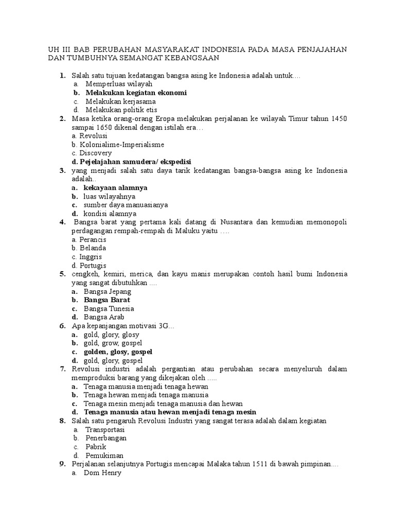 Uh Iii Bab Perubahan Masyarakat Indonesia Pada Masa Penjajahan Dan Tumbuhnya Semangat Kebangsaan