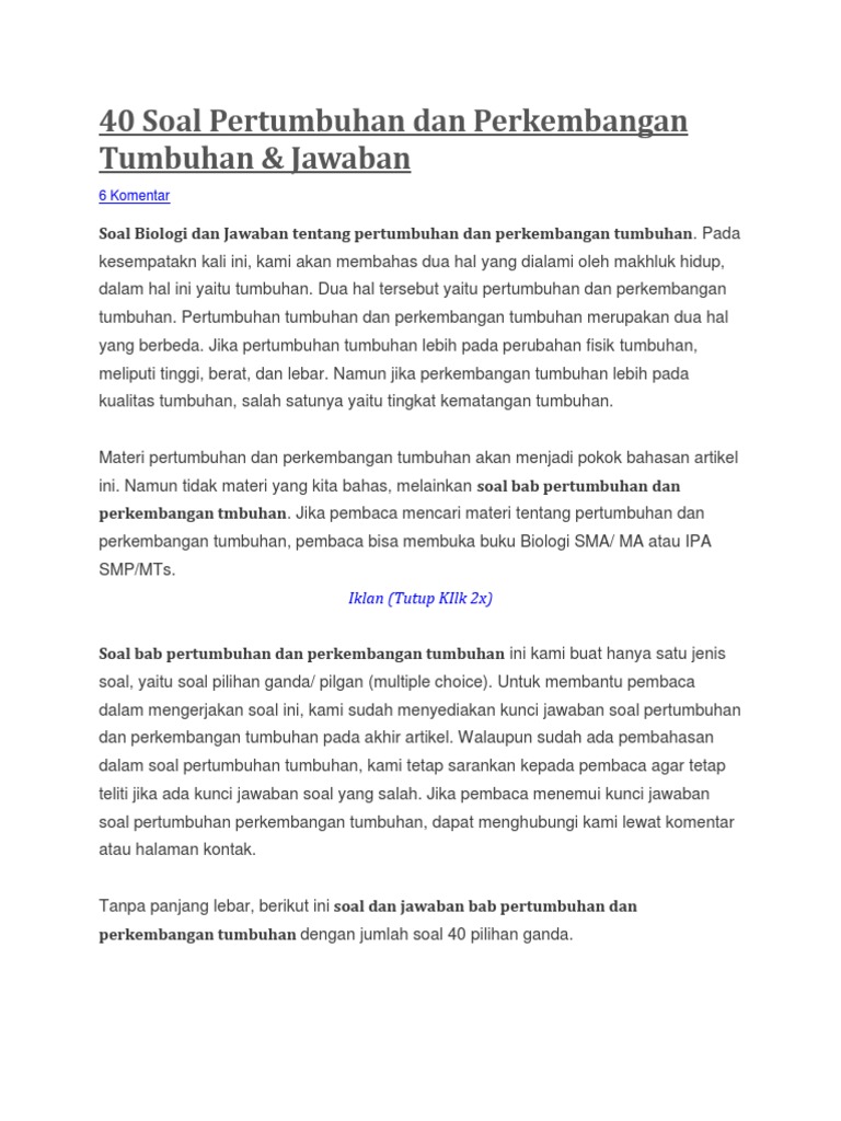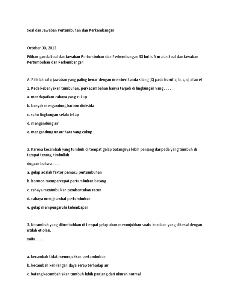 Contoh Soal Pertumbuhan Dan Perkembangan