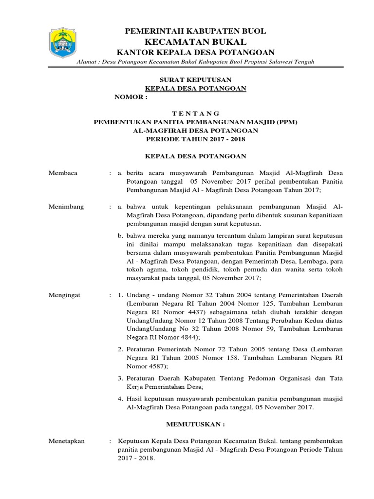 45017SK-CPT2018 Tentang Pembentukan Panitia Pembangunan Masjid Baiturrahman Kenagarian Payobasung Kecamatan Payakumbuh Timur Kota Payakumbuh. Format administrasi desa november 20 2018 at 1045 pm. Sk panitia pembangunan masjid al amal.