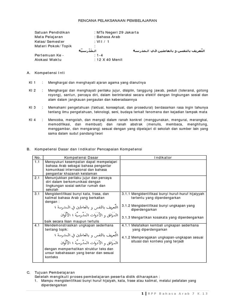 Doc Rpp Bahasa Arab K13 Aurian Firmansyah Academia Edu