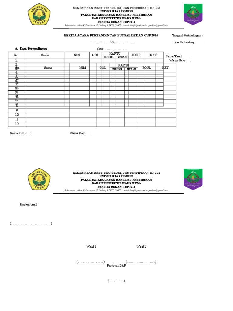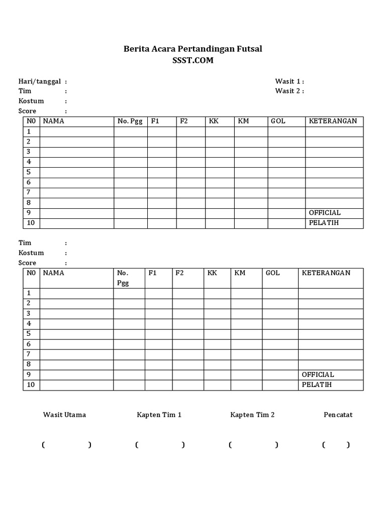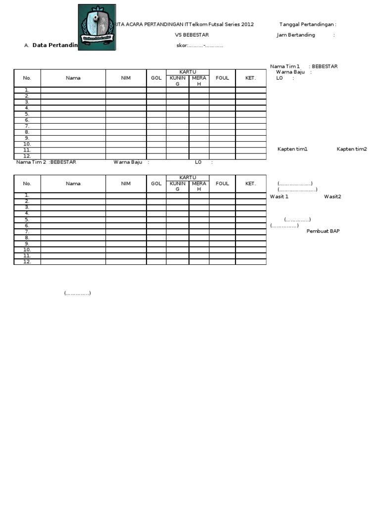 Contoh berita acara pertandingan futsal. Persiapan pertandingan futsal selanjutnya dimulai setelah pertandingan sebelumnya berakhir. Berita Acara Futsal 2010Fix Administrasi Dan Sistim Pelaporan Pertandingan. Blue Light FC SMK 5 Berau 3.