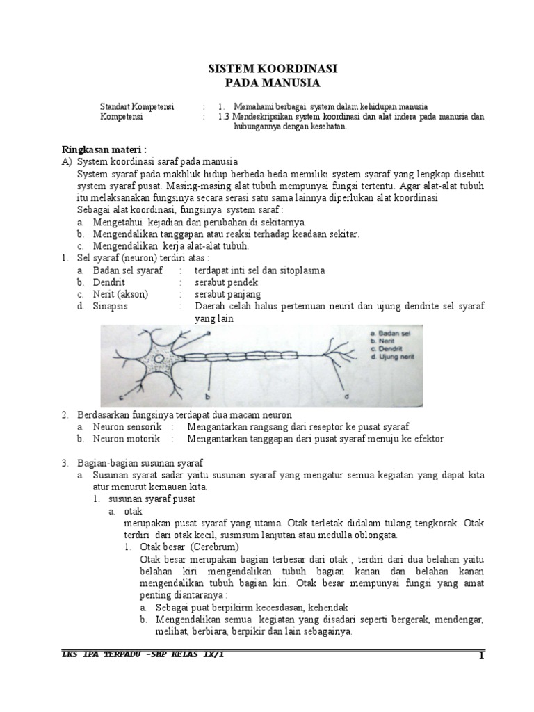 Kelas Xi Ipa Lks Sistem Koordinasi
