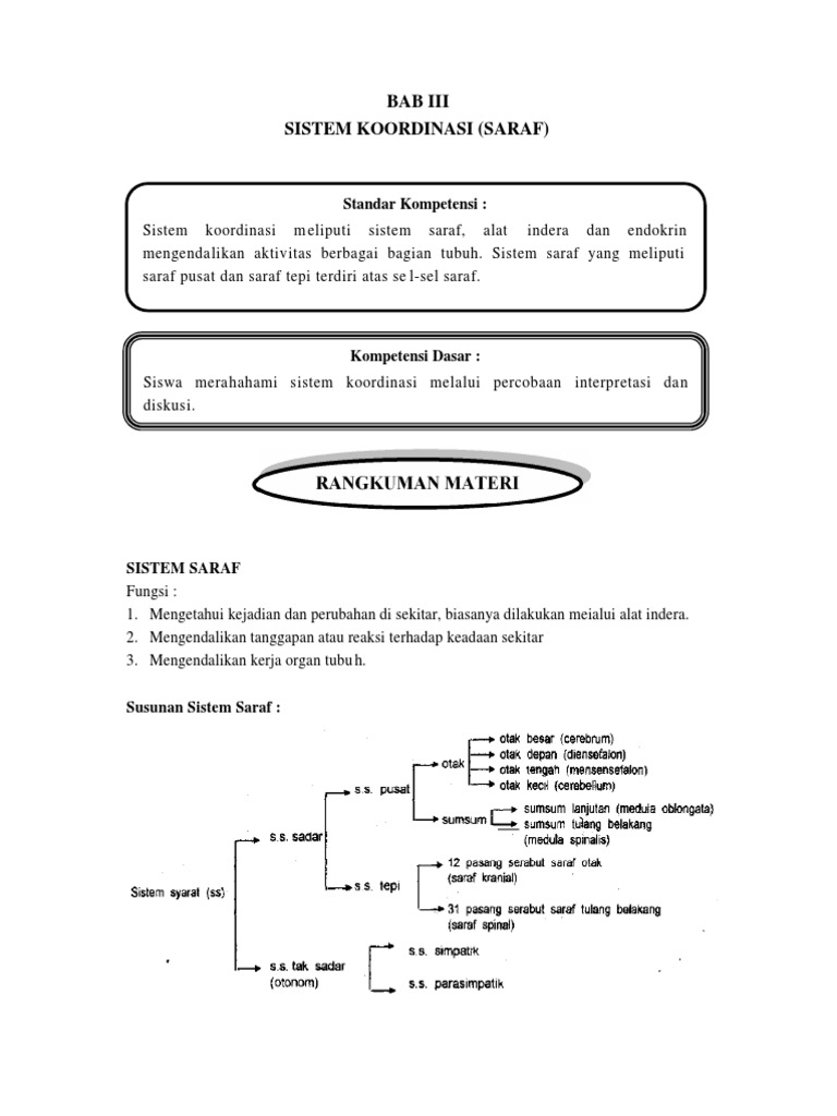 Susunan Saraf Pusat Ipa Belajar Untuk sub materi atau sub bab yang dijadikan dalam penyusunan soal ini yaitu sebagai berikut.
