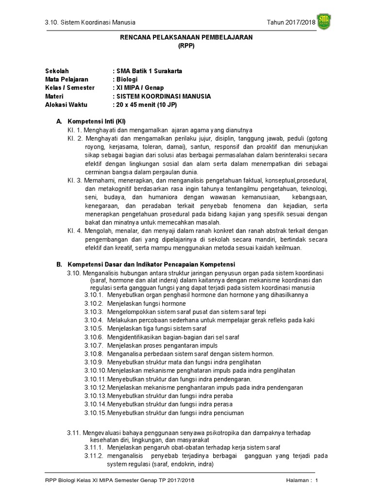 8 Rpp Sistem Koordinasi Manusia