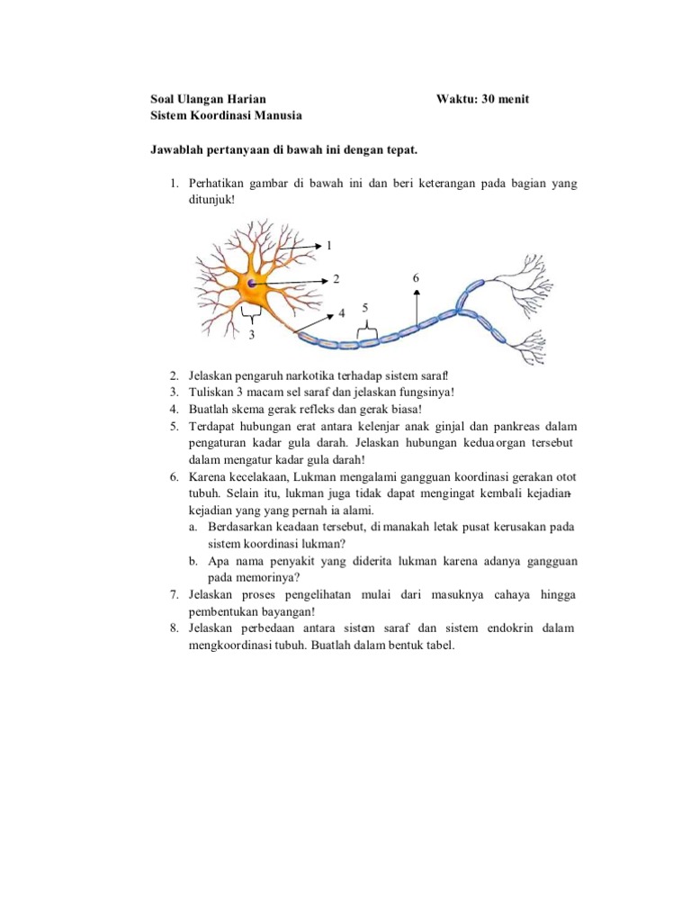 30 Soal Materi Sistem Koordinasi Pada Manusia Susunan Saraf Manusia Sel Saraf Sistem Hormon Dan Kelainan Sistem Koordinasi Beserta Kunci Jawabannya